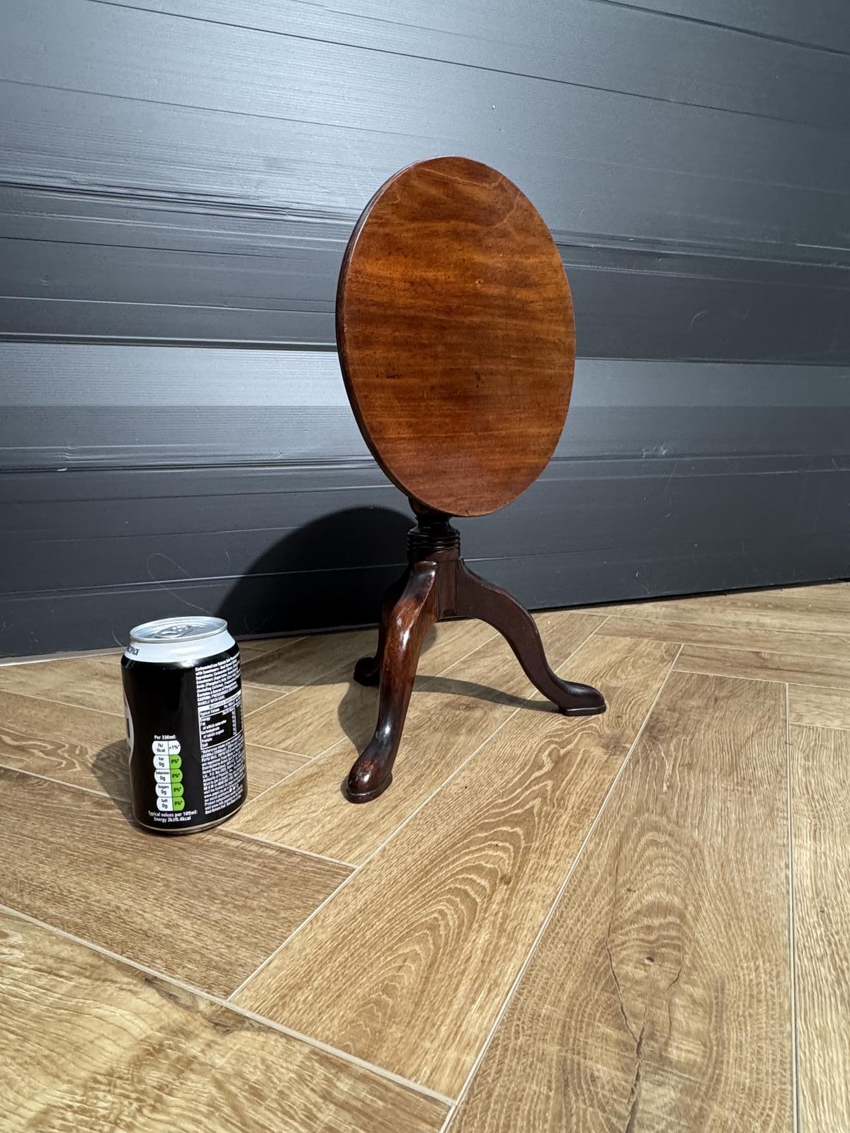 Georgian mahogany snap top table, it is 41cm high with the top in the up position and 24cm diameter. All in excellent condition