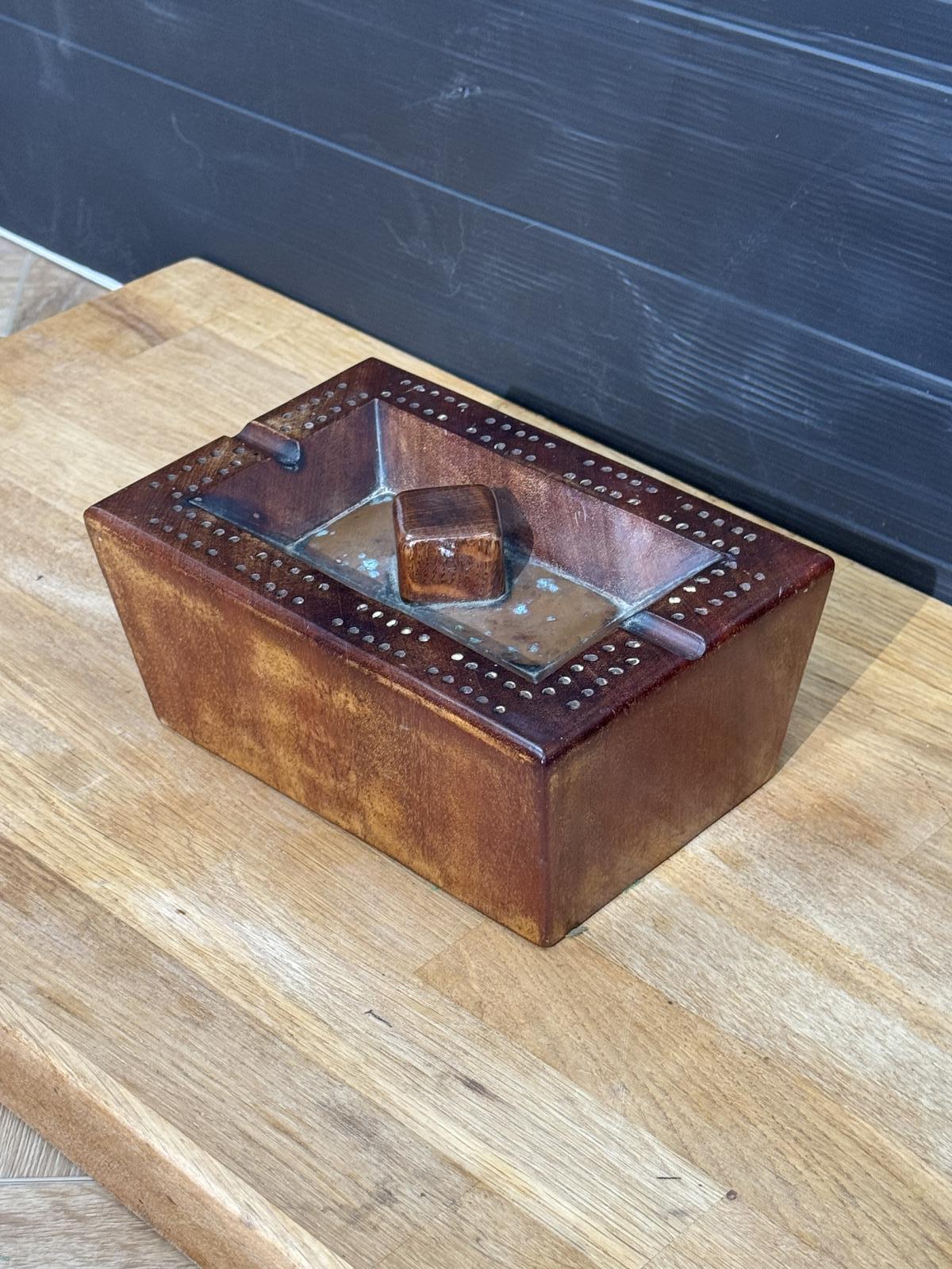 Offered for sale is this 19th Century antique copper and mahogany cribbage and ashtray block. In good condition apart from some markings as shown.